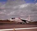 EDWARDS AIR FORCE BASE, Calif. -- A T-38 Talon takes off from here with only one engine during single-engine takeoff testing. The high-risk testing the aircraft is undergoing will help determine the safest single engine takeoff speed for the aircraft if an engine fail during takeoff. (U.S. Air Force photo by Chad Bellay)